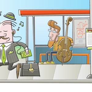 Dancing, iPod, Music, Business man, Double bass, Bus, Musician, Happy, Hipster