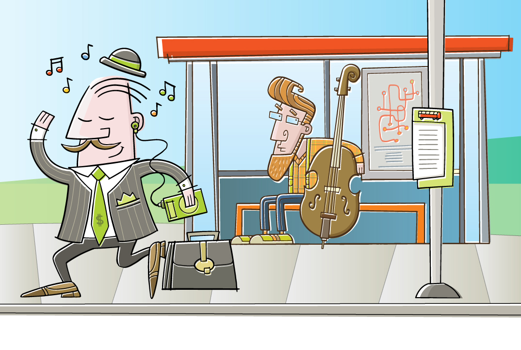 Dancing, iPod, Music, Business man, Double bass, Bus, Musician, Happy, Hipster