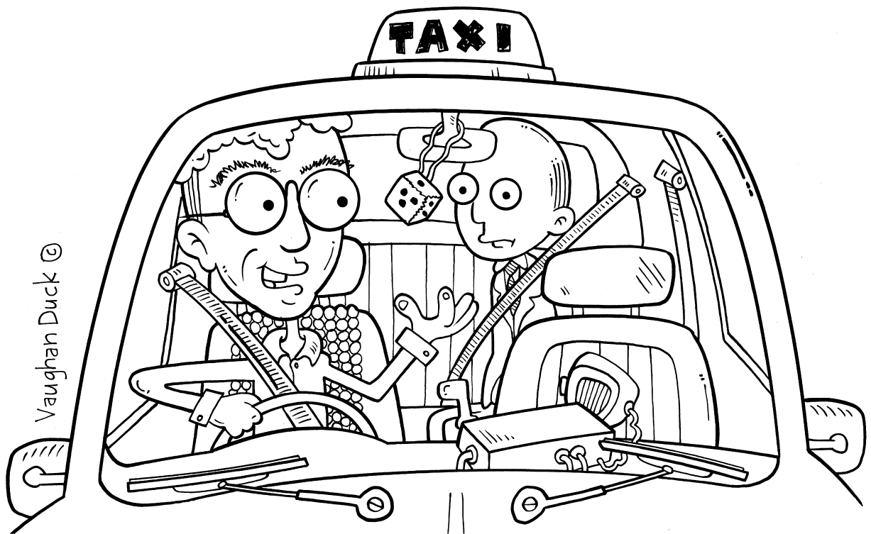 Dr Karl, Taxi, Fluffy Dice, © Vaughan Duck