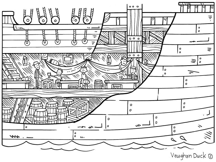 Cross-section, Endeavour, Tall Ship,
