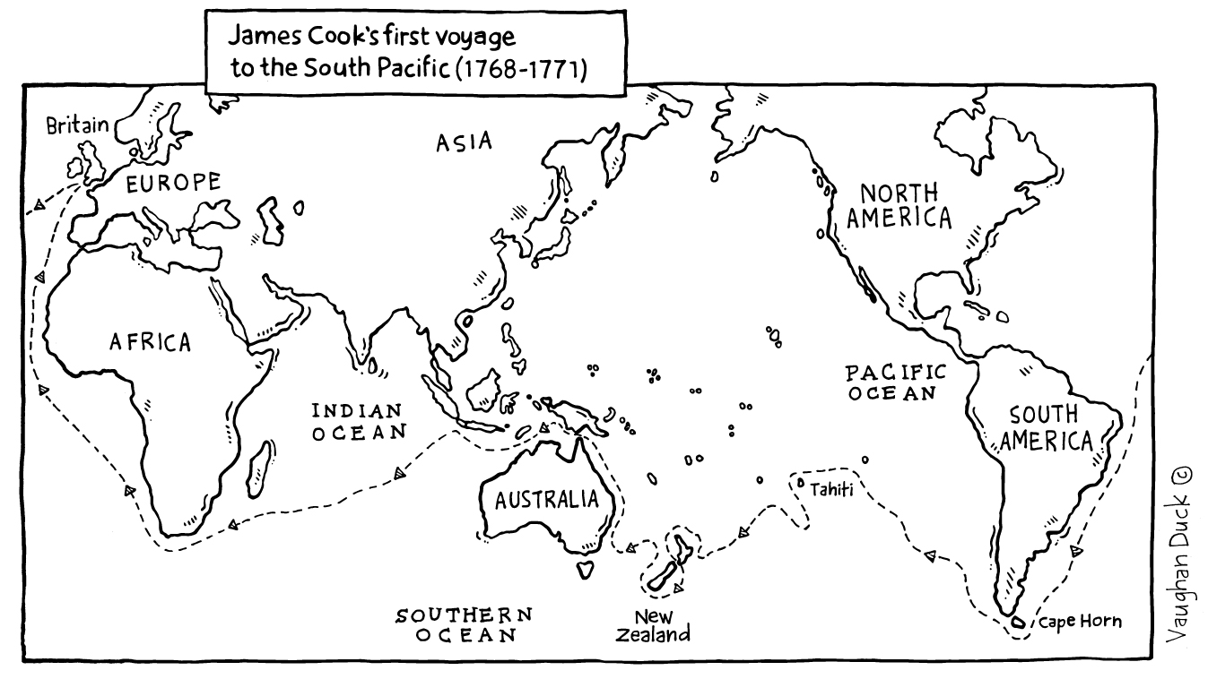 South Pacific, Map, Ocean, Voyage, Captain Cook,