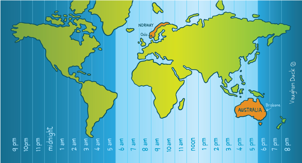 Time Zone, World Map, Australia, Norway, Oslo, Brisbane,