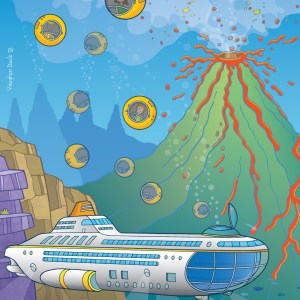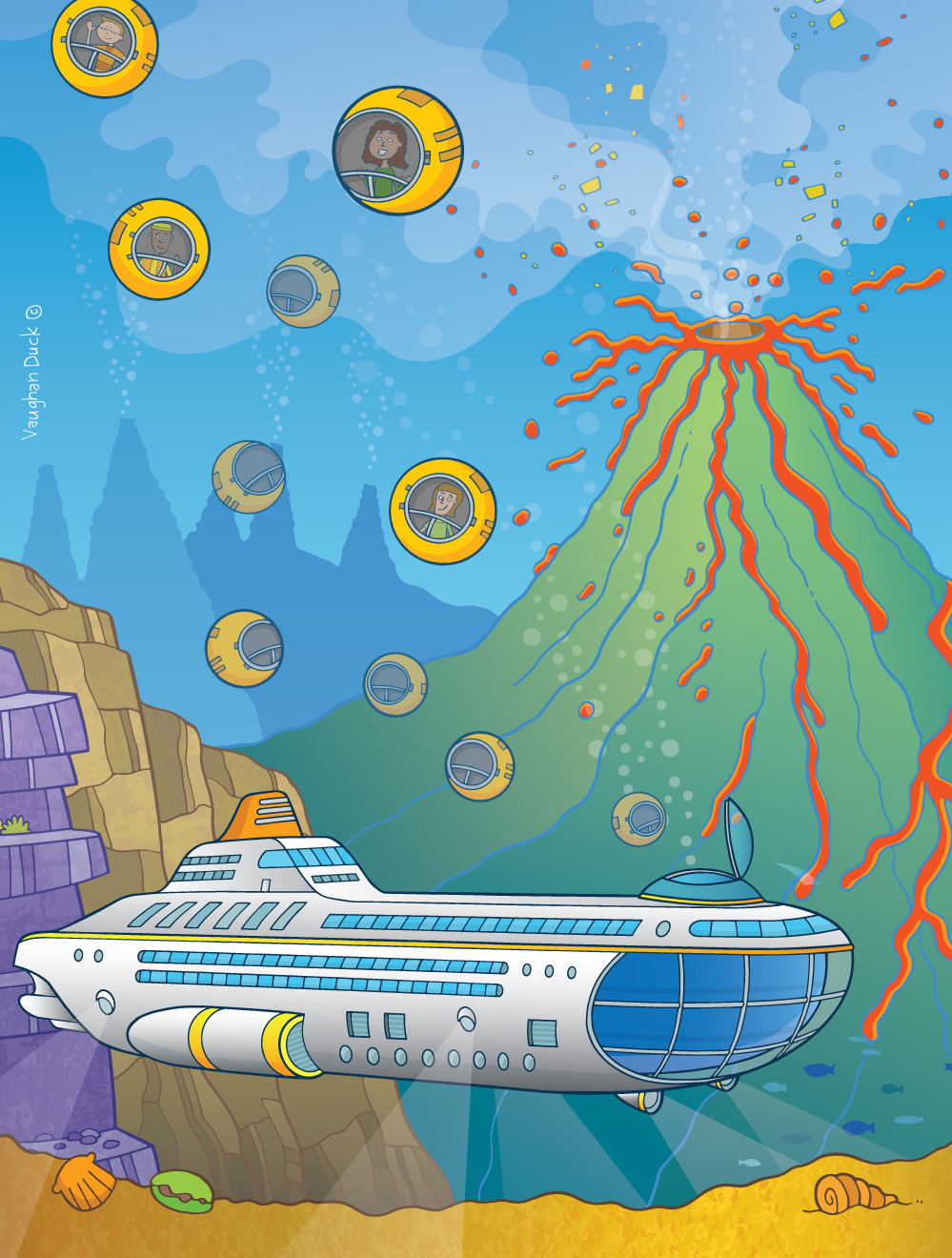 Life pods, Bubbles, Submarine, Escape, Volcano, Eruption, © Vaughan Duck