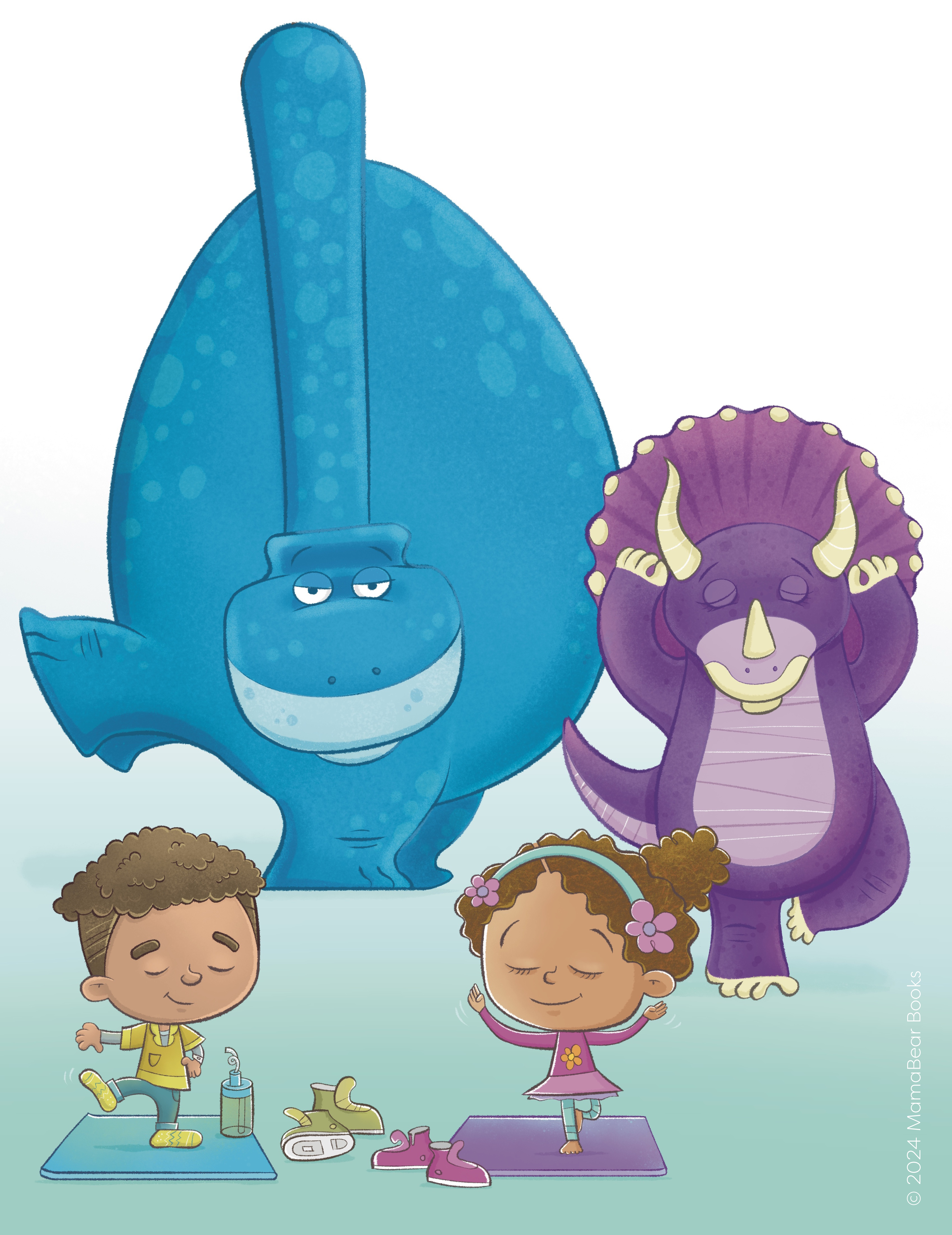 “Highlighting the importance of patience, kindness, empathy, and never giving up, this is a well-rounded, heartwarming story that’s so fun that its lessons about friendship and supporting each other slip in offhandedly, without didacticism. The spread of worn-out dinos being carted by kids on skateboards, strollers, and wagons is laugh-out-loud funny, but even that is one-upped, a page later, by a vision of dinos striking yoga poses.” – Booklife